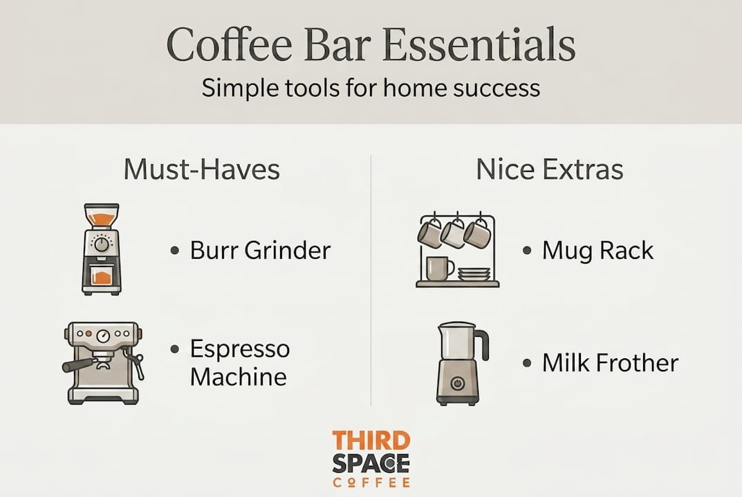 Now that you're dreaming of your perfect coffee corner, let's start with the essentials you'll need. Think of this phase like stocking a kitchen for the first time. You want a solid foundation before adding the fun extras.